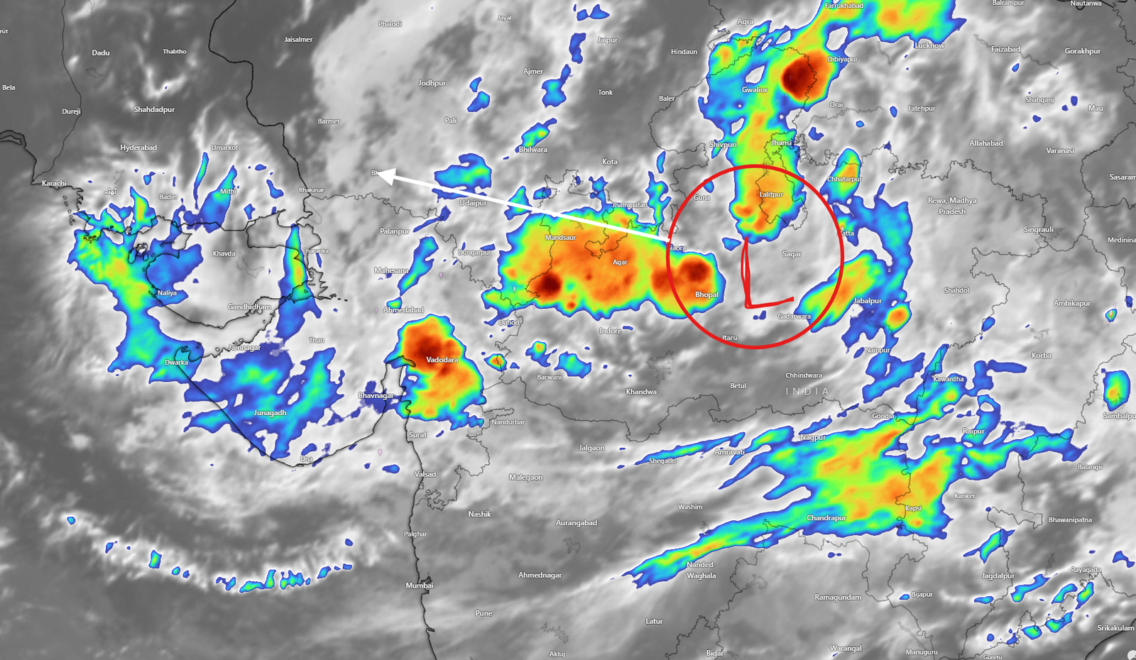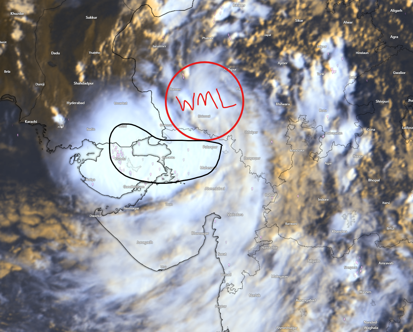 ડીપ ડિપ્રેશન આગામી કલાકોમાં દક્ષિણ-પૂર્વ પાકિસ્તાનના ભાગો તરફ આગળ વધશે, કચ્છ, ઉત્તર-પશ્ચિમ ગુજરાતના વિસ્તારોમાં આવતી કાલ સુધી વરસાદનું જોર રહશે.